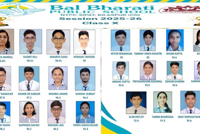 स्वर्णिम उपलब्धि: बाल भारती पब्लिक स्कूल, सीपत ने रचा सफलता का नया इतिहास CBSE कक्षा 10वीं में शत-प्रतिशत परिणाम, अनुष्का मंडल बनी टॉपर (98.8%) सीपत, बिलासपुर एनटीपीसी सीपत स्थित बाल भारती पब्लिक स्कूल ने सीबीएसई कक्षा दसवीं परीक्षा सत्र (2025–26) में शत-प्रतिशत परिणाम प्राप्त कर […]