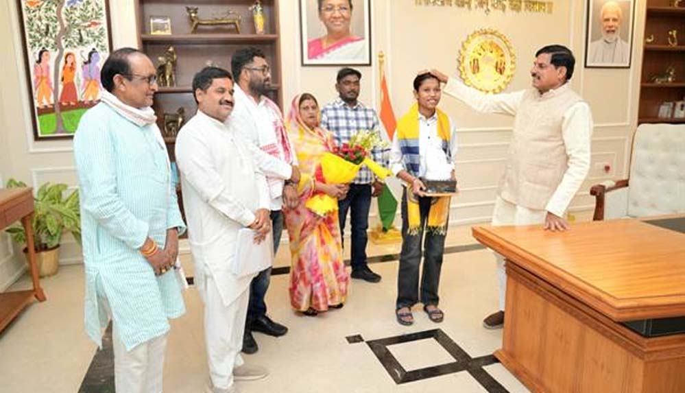 मुख्यमंत्री डॉ. यादव ने प्रतिभा को आशीर्वाद देते हुए कहा कि 'प्रतिभा जैसी बेटियां प्रदेश की शान हैं। प्रतिभा की सफलता लाखों बेटियों और अन्य विद्यार्थियों के लिए प्रेरणा है। बिटिया की उपलब्धि पर पूरे प्रदेश को गर्व है।' मुख्यमंत्री डॉ. यादव का कु. प्रतिभा और उनके परिजन ने पुष्प-गुच्छ भेंट कर अभिवादन किया।